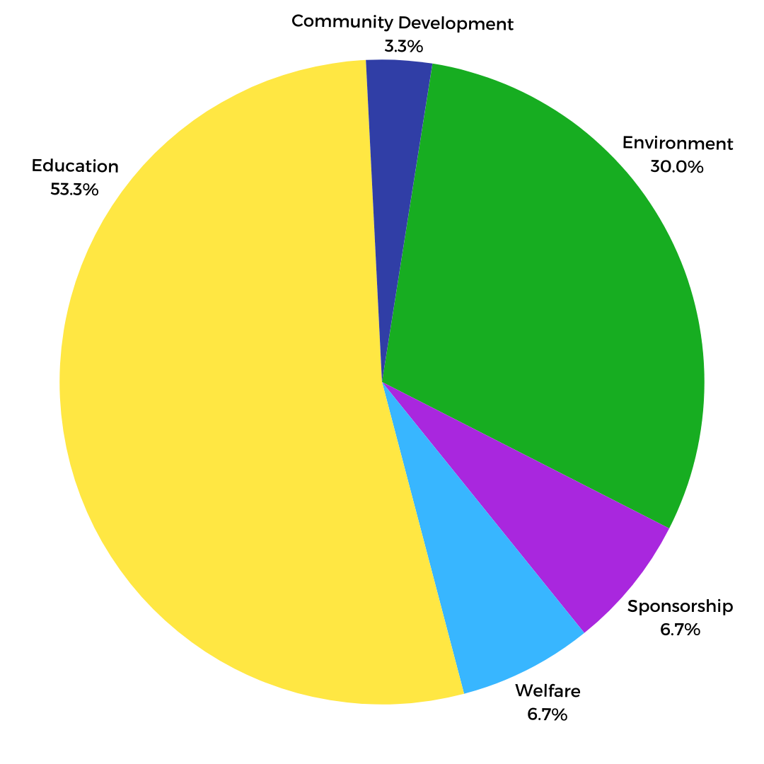 YTL Power International Berhad recorded RM24.3 million in community investments in FY2024, representing 0.71% of its profit-to-giving ratio. The majority of contributions were directed towards educational initiatives, which accounted for 53.3% of total giving, followed by environmental initiatives at 30%. Educational efforts were largely driven by programmes such as the Pemimpin GSL Leadership Programme, KelasKita and LEAPS Academy.
