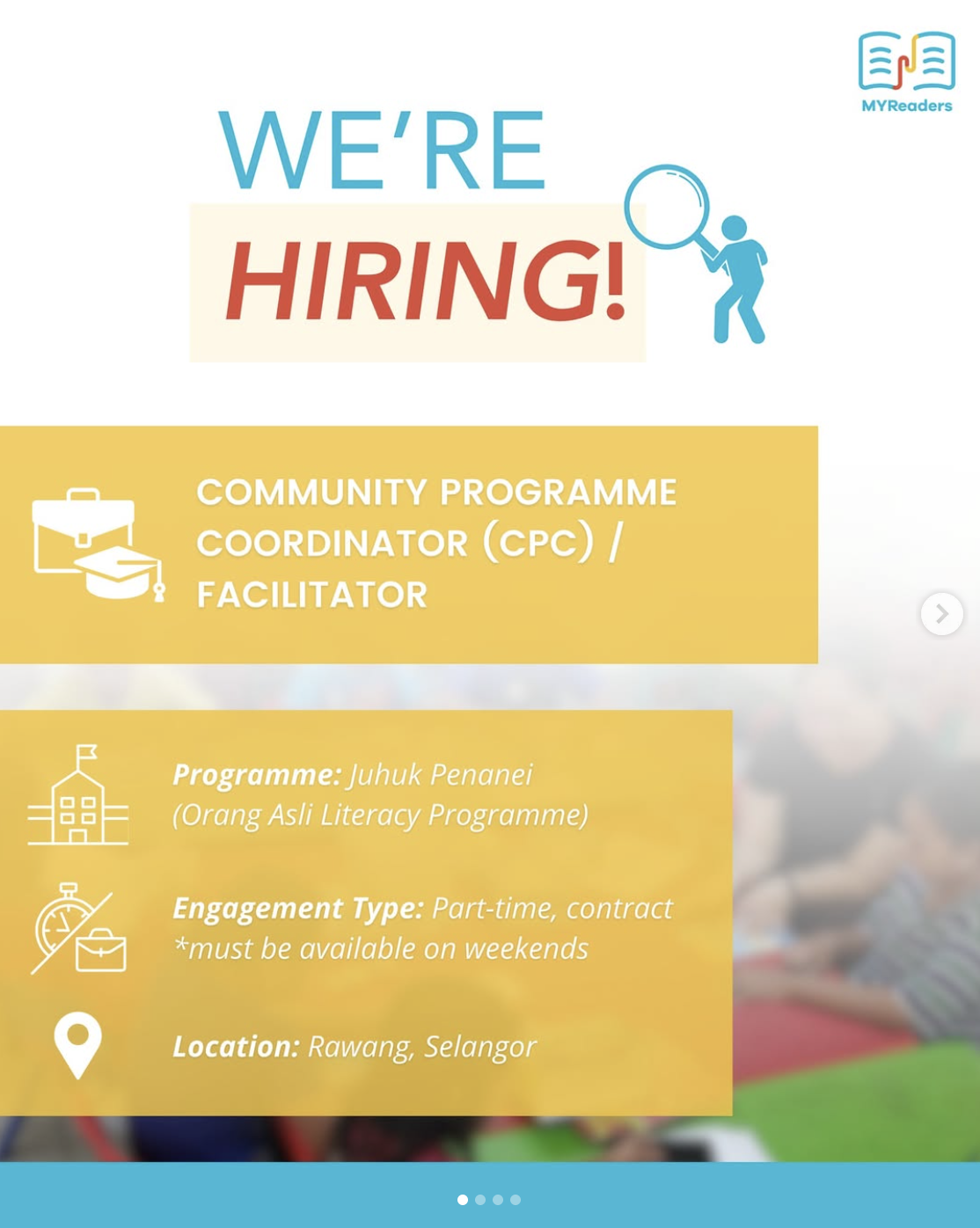 Support the Orang Asli Literacy Programme (Juhuk Penanei) by coordinating and facilitating structured literacy sessions within the community. The role focuses on improving literacy outcomes for Orang Asli children through guided sessions, local engagement, and programme monitoring.