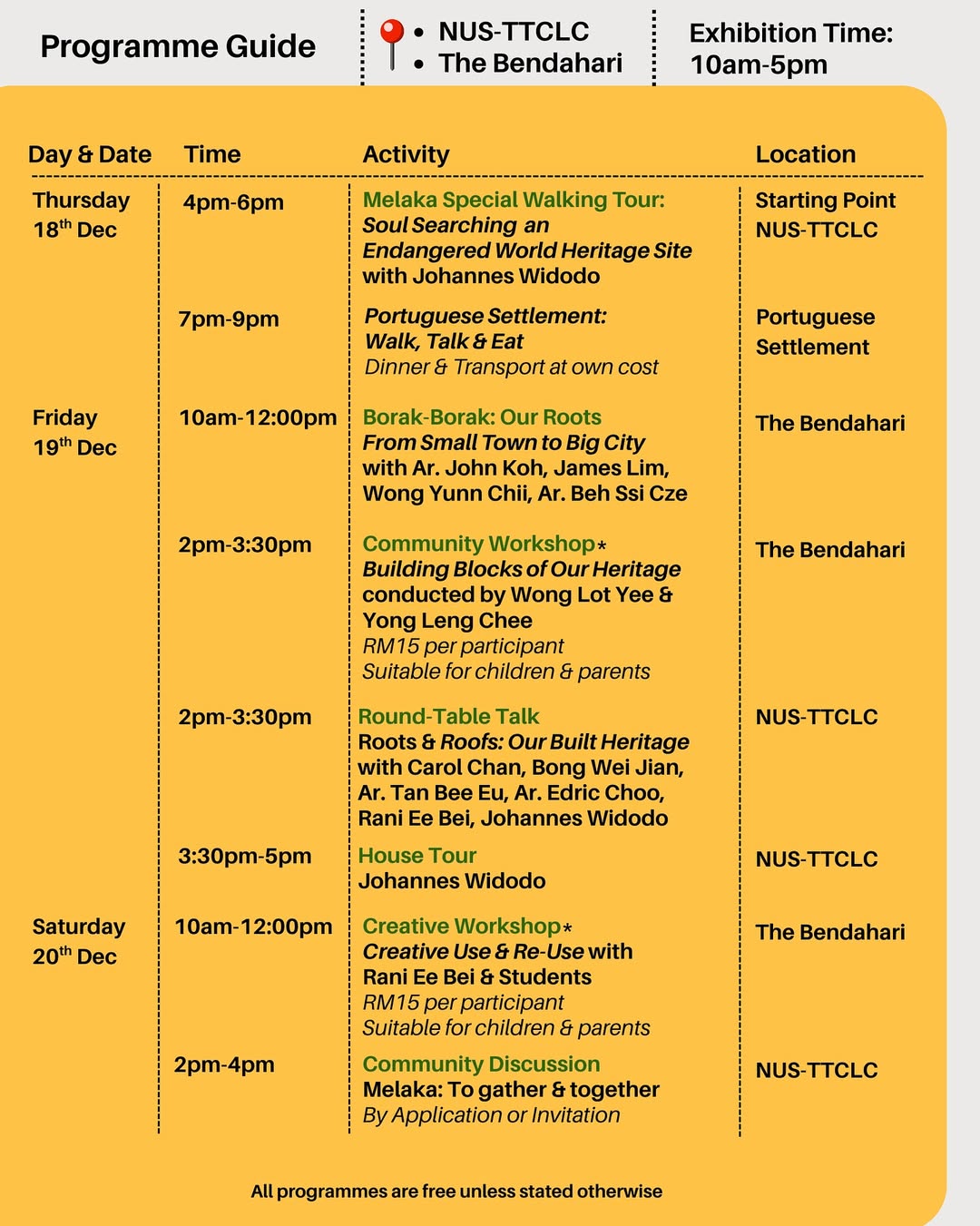 Locations: NUS-TTCLC, No. 54-56 Jalan Tun Tan Cheng Lock | The Bendahari 147-149 Jalan Bendahara