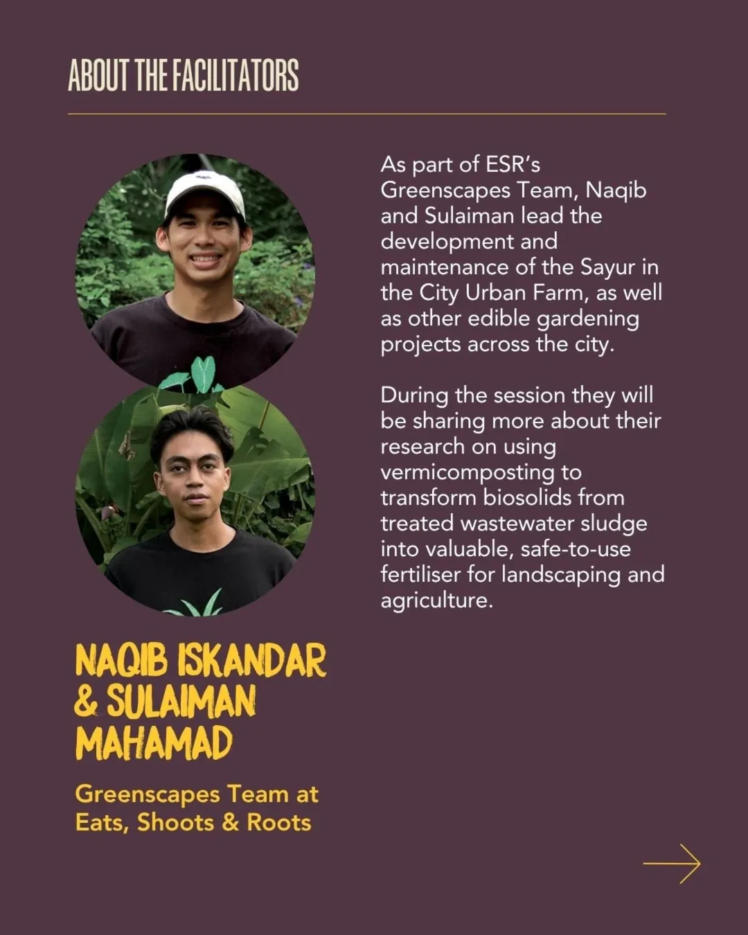Join us at Sayur in the City for this hands-on workshop, where you’ll meet the tiny ecosystem engineers that turn everyday food waste into rich, living soil. Learn more about vermicomposting as we share insights from our ongoing research project, where worms transform biosolids into safe, usable, fertiliser. Discover vermicomposting's potential in shaping the future of sustainability.