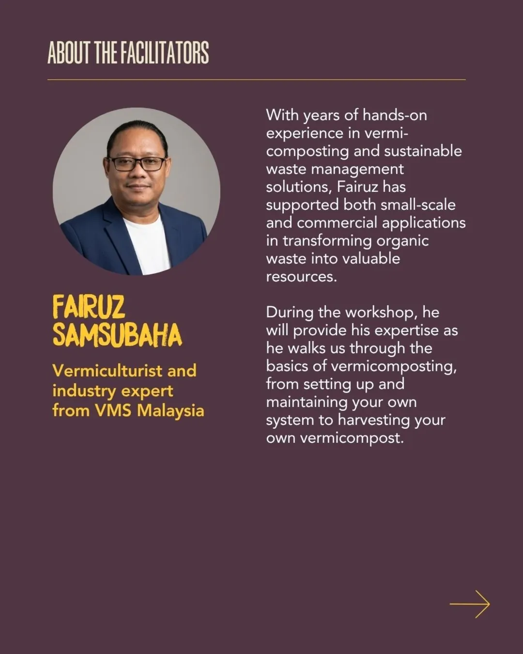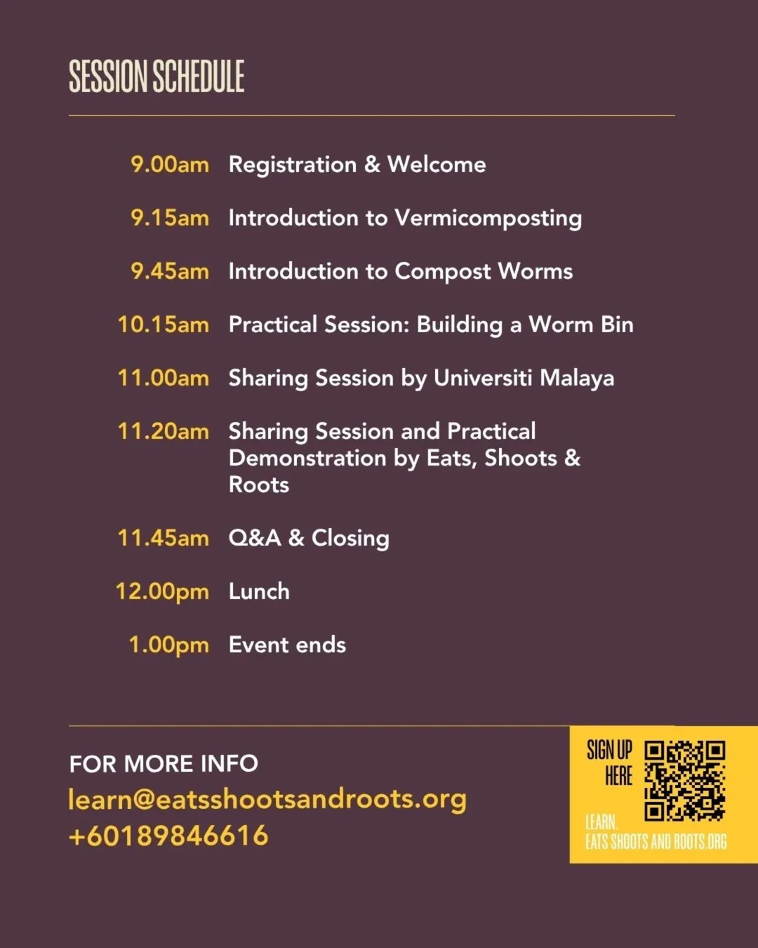 In collaboration with Universiti Malaya and UM Research, this session will also guide you through how to build, care for, and sustain your own worm composting system, so you can start making a change from your own homes and communities.