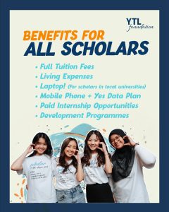The YTL Foundation Scholarship Programme is now open! You can pursue a Bachelor’s degree at a university of your choice, whether locally or abroad, with guidance, mentoring, and opportunities to help you thrive.